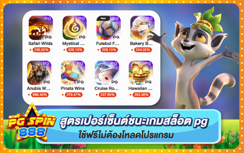 เปิด ทางเข้าเล่นเกมสล็อตพีจี ที่กำลังแจกโบนัส โดยยึดจาก 10 เกมแรก ซึ่งจะเป็นอันดับมาแรง แจกง่ายที่สุด แนะนำ 10 เกมนี้น่าลอง